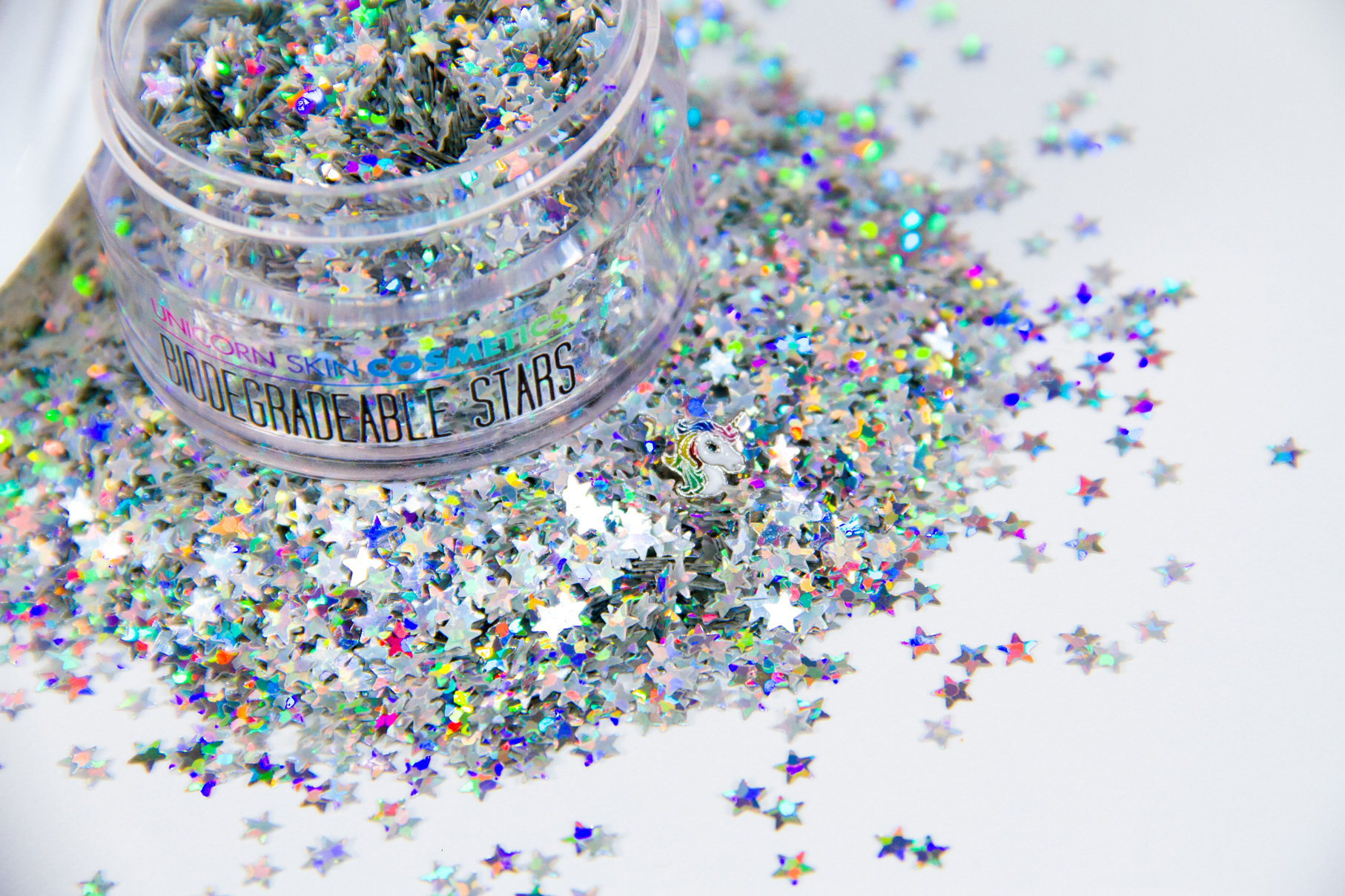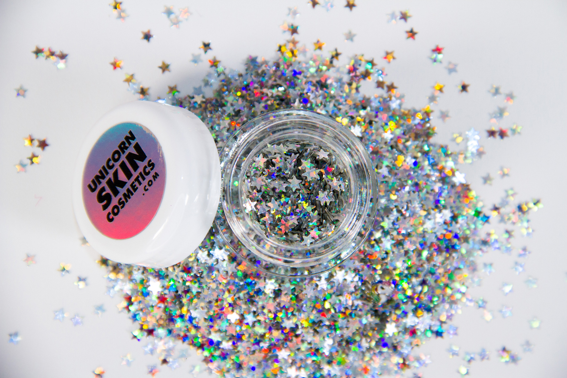 Add a galactic fantasy to your makeup with these amazing silver holographic biodegradable stars.