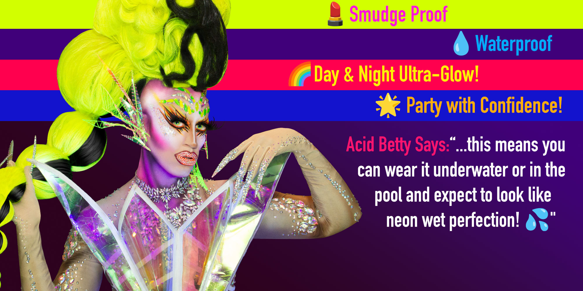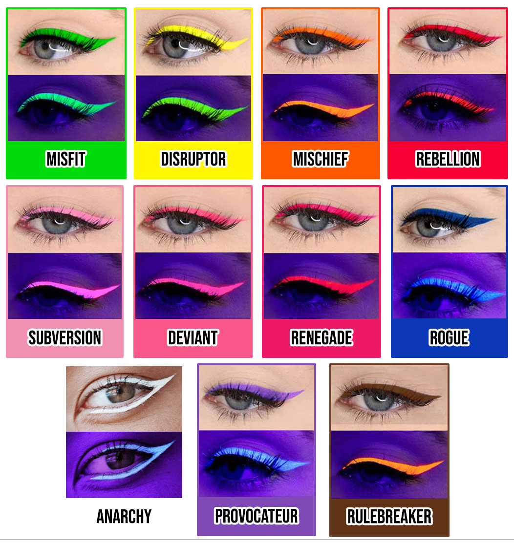 Prepare to unleash your inner party monster from day to night with Acid Betty's Haus of Acid and Unicorn Skin Cosmetics' UV Reactive Liquid Liners.