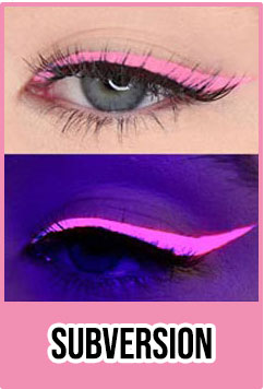 Challenge the norms and redefine beauty with Subversion, the UV Reactive Liquid Liner in light pink.